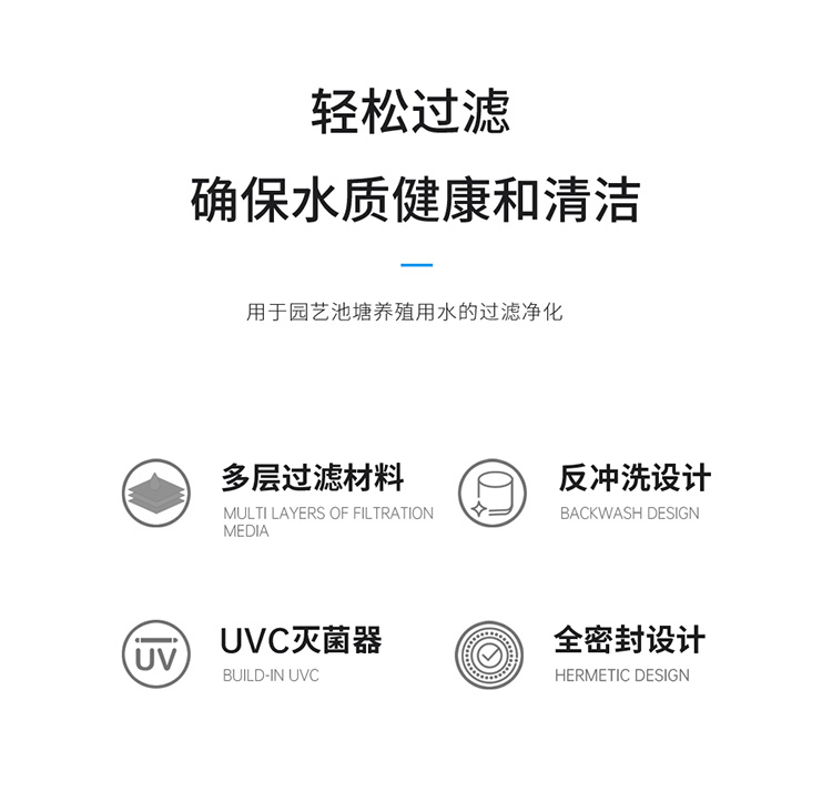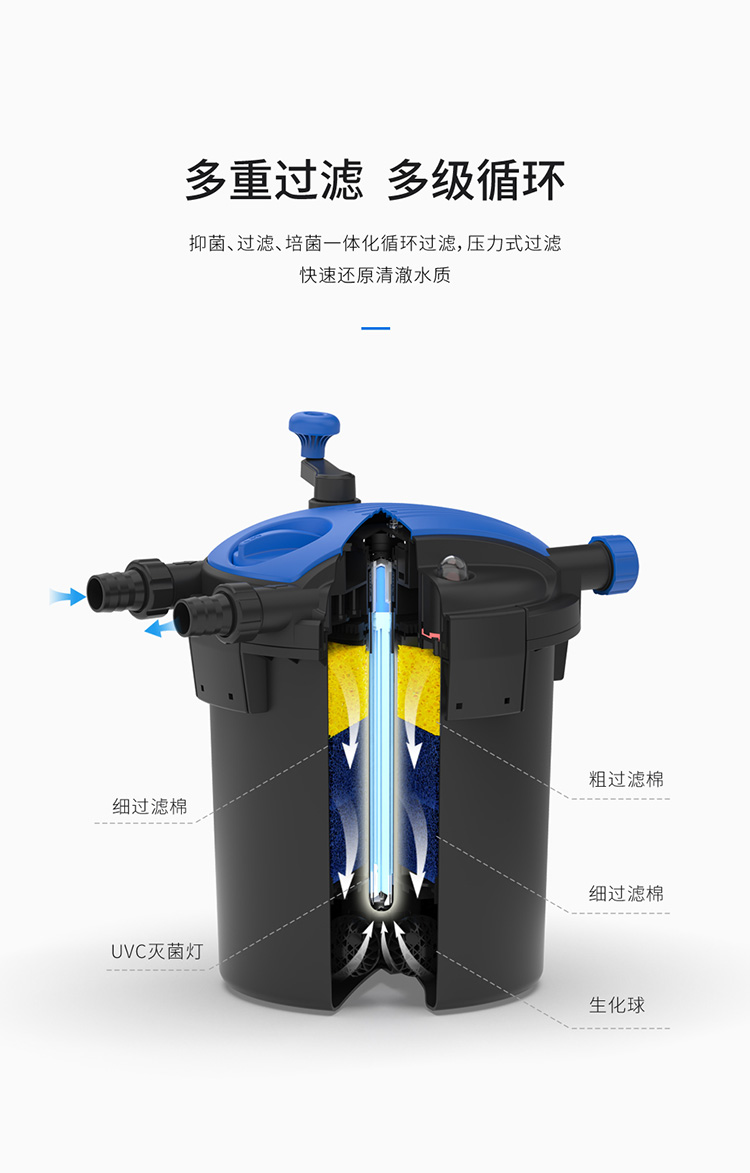 內(nèi)置多種生化過濾材料,有效降解水中的硝酸鹽、磷酸鹽,分解水中多余養(yǎng)分,保證水體清澈。